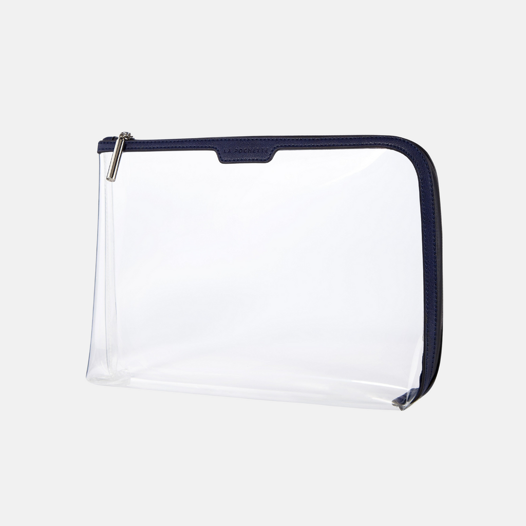 For the multi-tasker on the move, this sleek, transparent pouch keeps your essentials in check—whether you’re commuting, traveling, or hitting the poolside in style. Spacious enough to fit tablets and personal tech for hybrid workdays, ideal to organize toiletries and other essentials, yet compact enough to slip into your carry-on, it’s the perfect blend of function and sophistication.