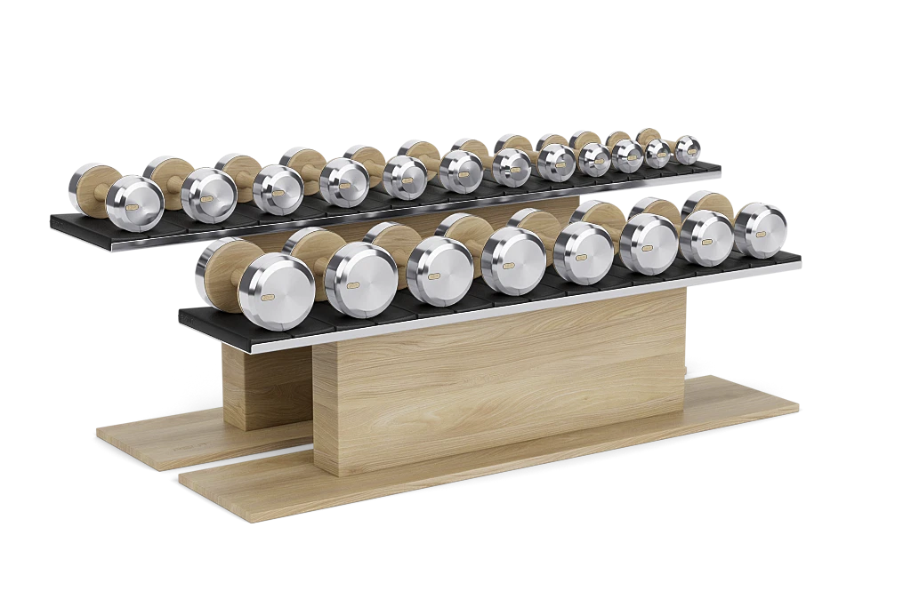 PENT. COLMIA™ Horizontal Dumbbells Set - Dumbbells - Horizontal Dumbbells Set is a luxurious collection of dumbbells crafted from stainless steel or bronze, and natural wood, available in a range of exquisite wood finishes, including American walnut, ash, black ash, and oak. This set offers a weight range from 2 to 20 kg, making it suitable for a wide variety of fitness enthusiasts.